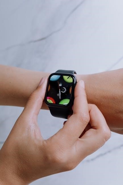 Avoid wearing the watch too tightly‚ as this can restrict blood flow. If you experience skin irritation‚ discontinue use and consult a dermatologist. Keep the device out of reach of small children‚ as it contains small parts that could pose a choking hazard.